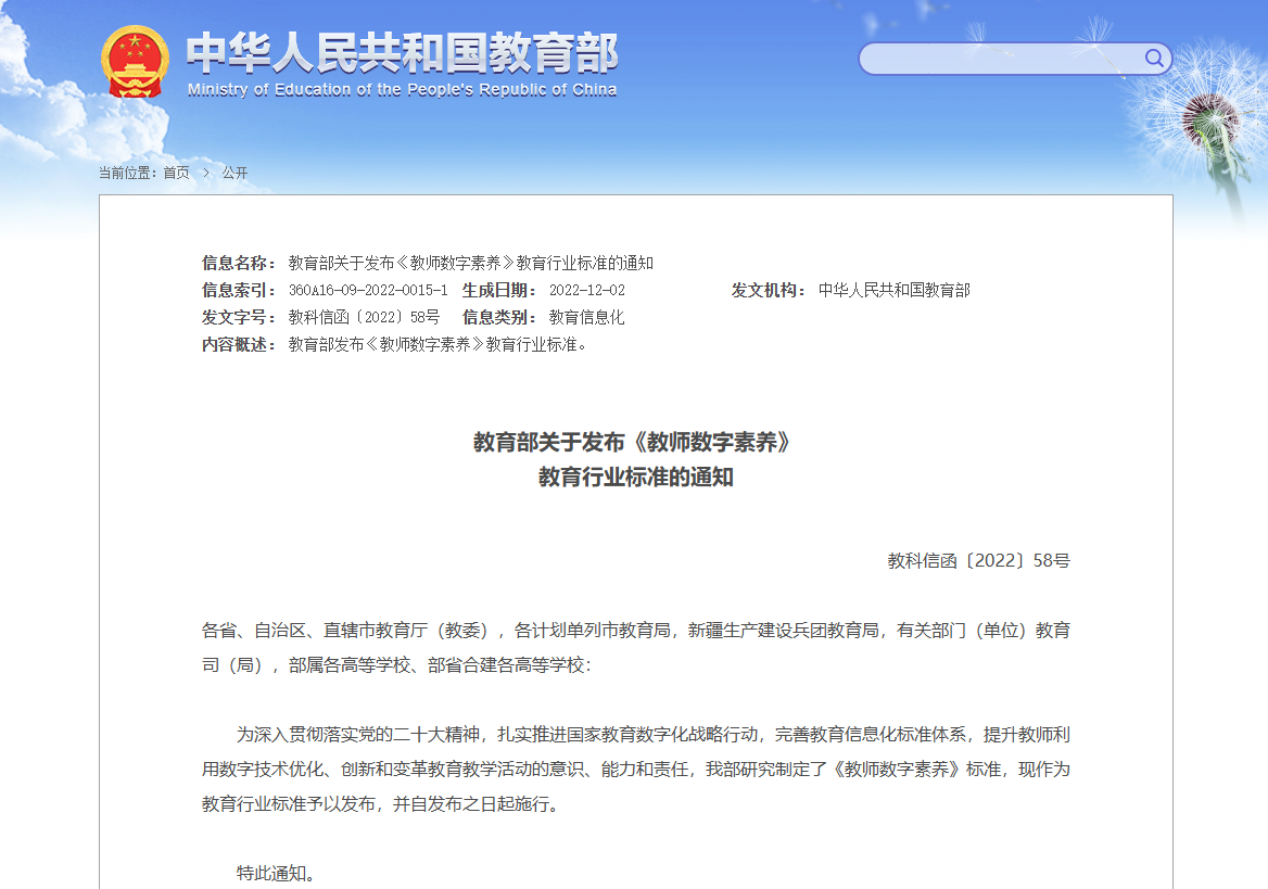 教育部关于发布《教师数字素养》教育行业标准的通知